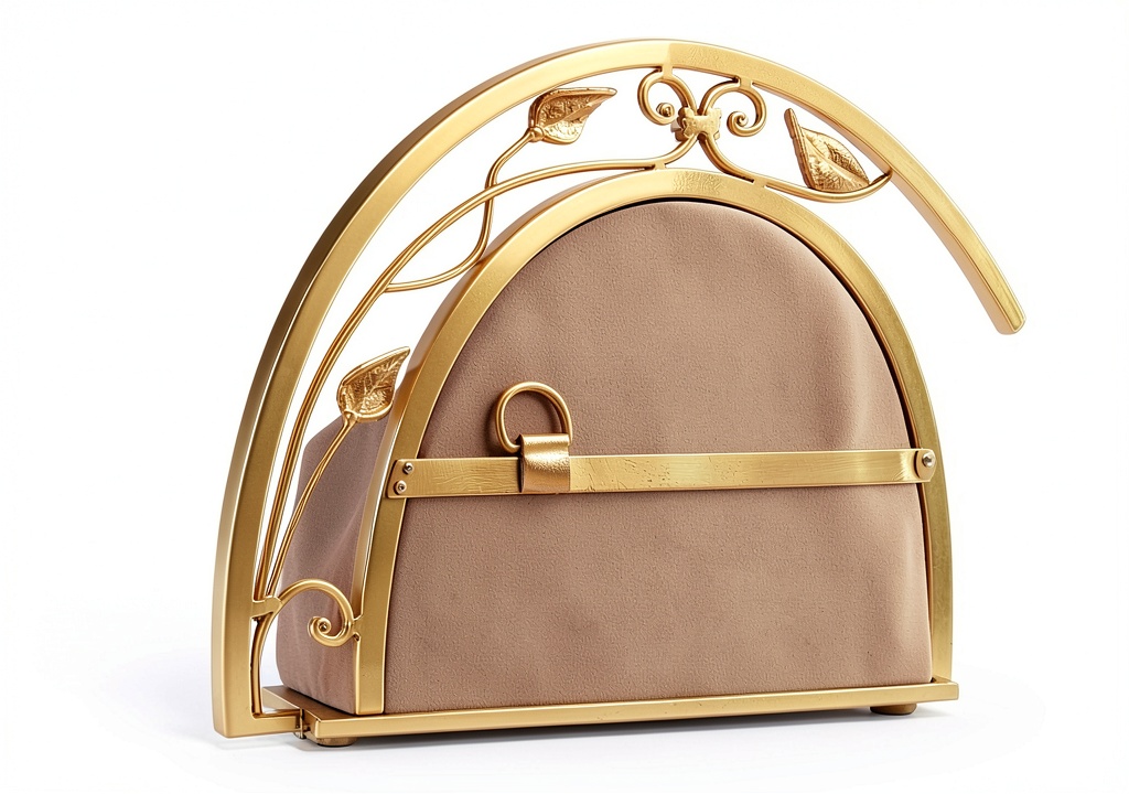 • Intricate gold metal frame featuring floral and vine patterns